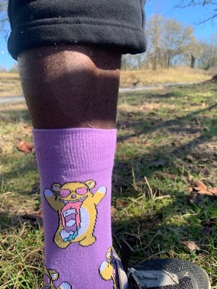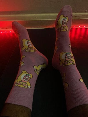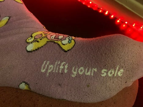 Uplifting the universal consciousness. One sole at a time. Made of comfortable cotton, these longer socks are cozy enough to wear all day long. Available in both unisex sizes.