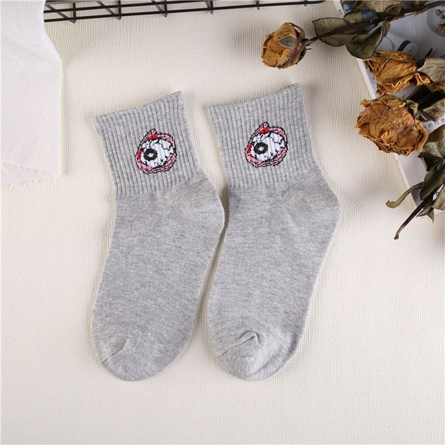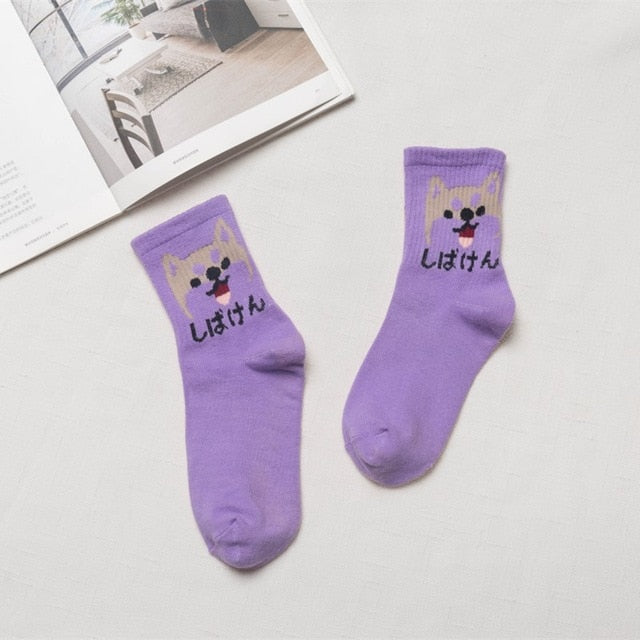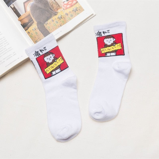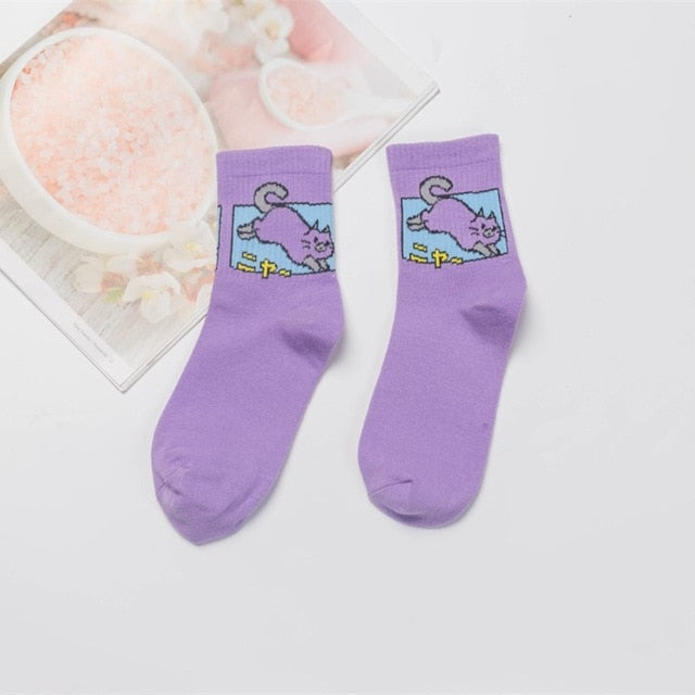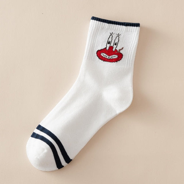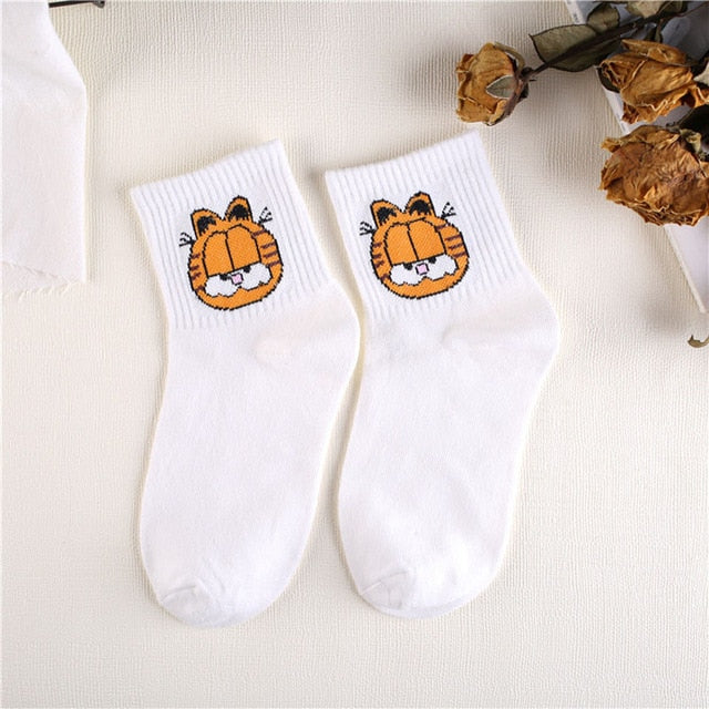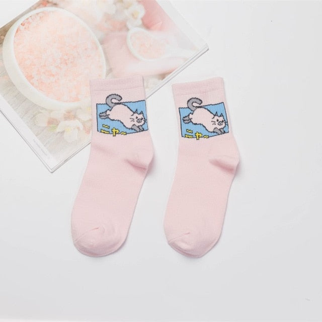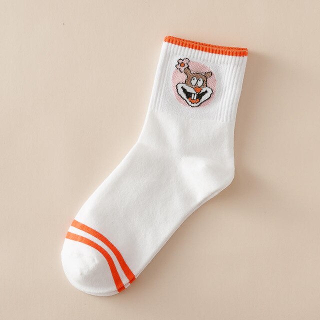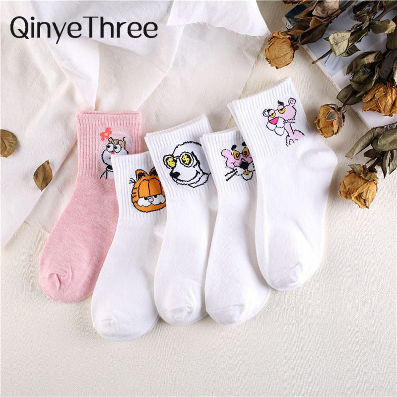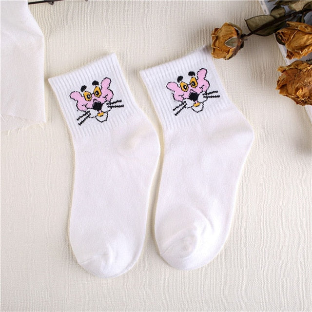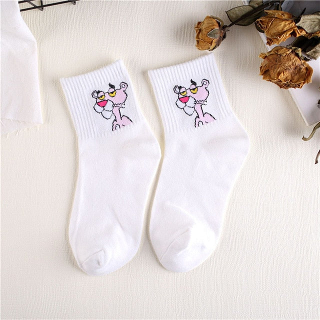 Japanese Kawaii Women Animals Cartoon Tube Socks Cute Egg Rabbit Panther Cotton Long Socks Female and Ladies Pink Milk White Sox