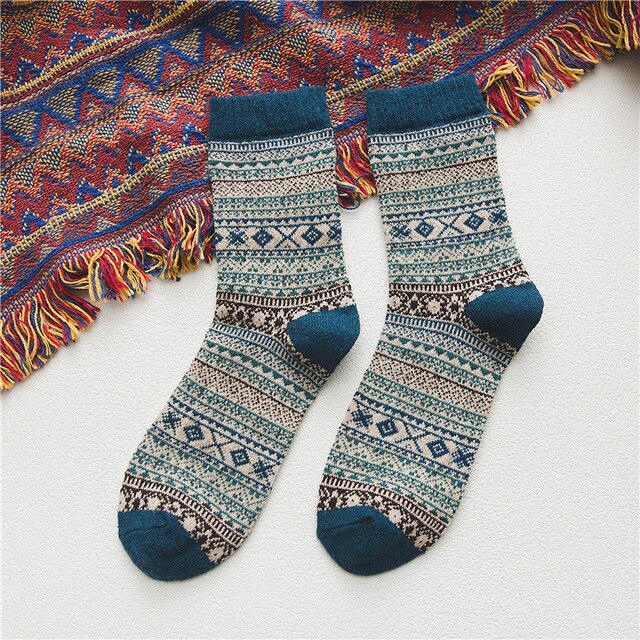 New Thick Stripe Crew Socks Folk-Custom Warm Winter Wool Socks